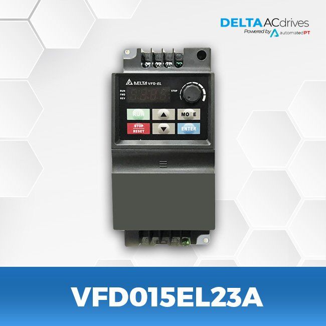 The VFD-EL series is multiple function new generation micro type AC drive. It has built in EMI filter, RFI switch, easy DC bus sharing for side-by-side installation, high precision current detection, overload protection, and a built in keypad.