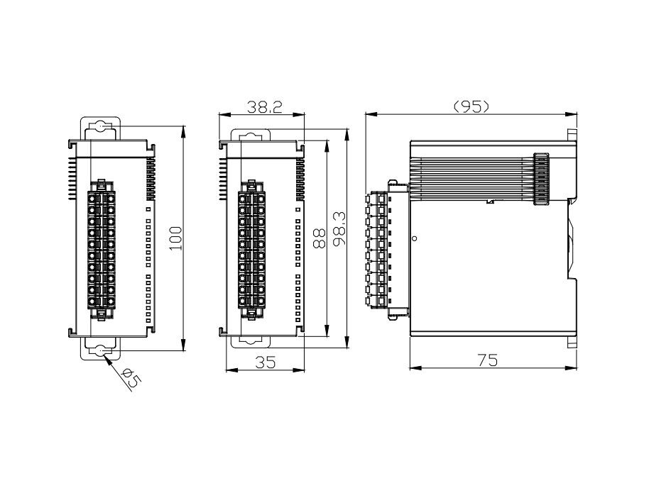 | Function | DC input (24 V), 0.5 A transistor / 2 A relay output |