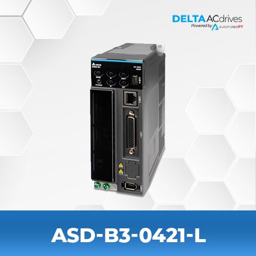 ASDA-B3 series is Delta’s newest generation servo system drive. This improves upon the ASDA-B2 series with faster response and settling time. The B3 drives are compatible with both B3, B2, A3, and A2 motors.