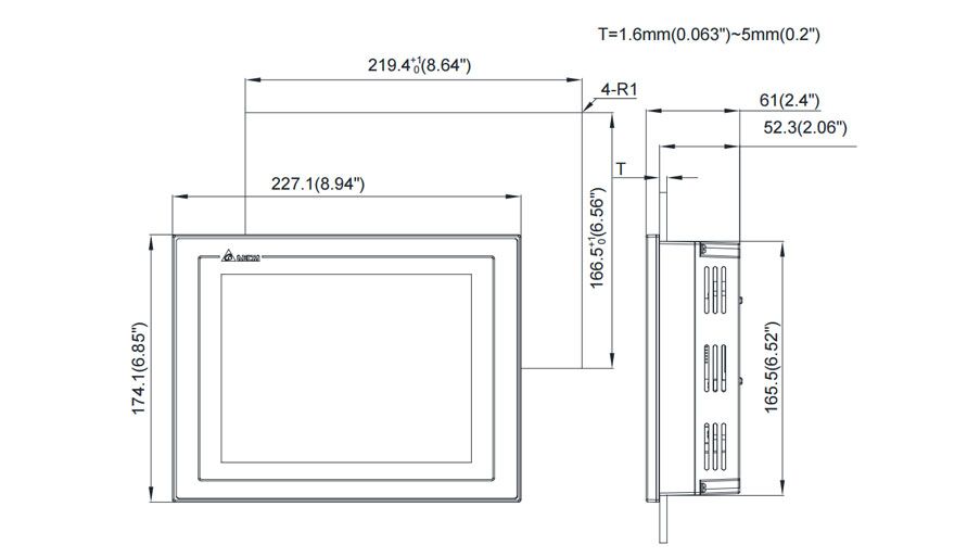 | Dimensions | Delta DOP-108IG Dimensions |