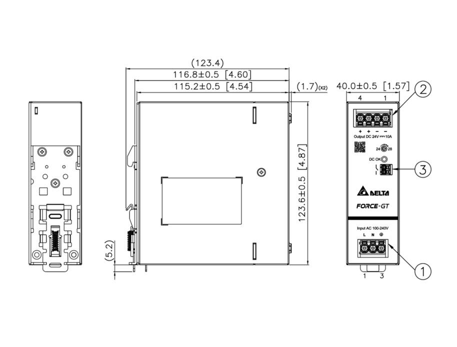 | Dimensions | Delta DRF-12V240W1GBA Dimensions |