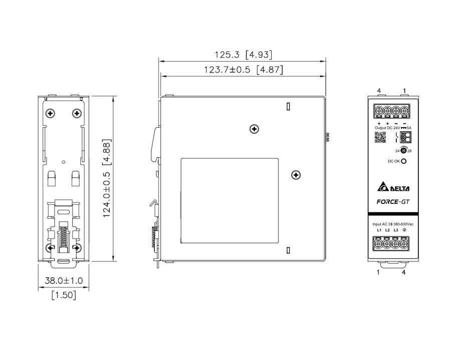 | Dimensions | Delta DRF-24V120W3GBA Dimensions |