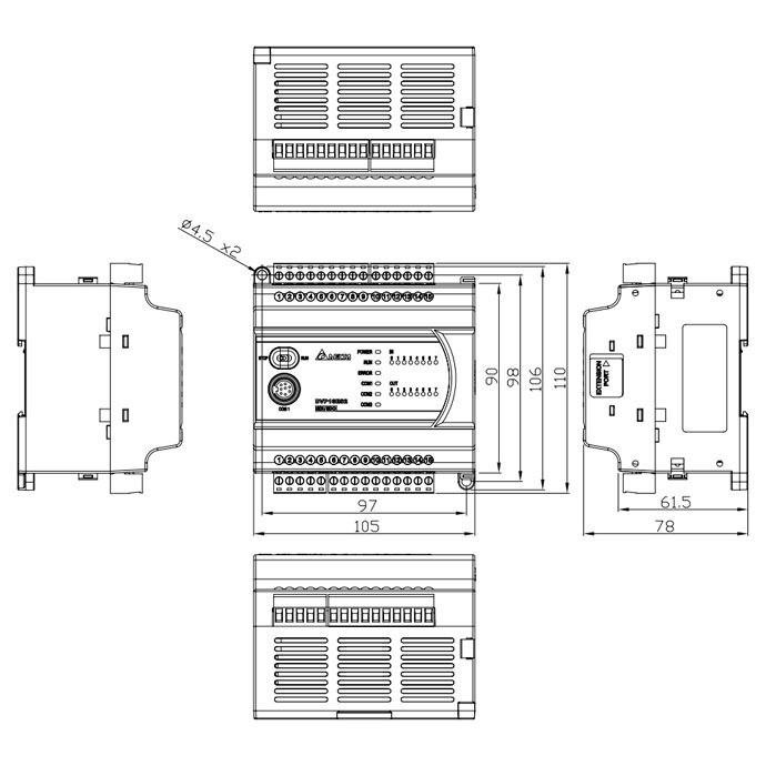 | Dimensions | Delta DVP16ES200T Dimensions |