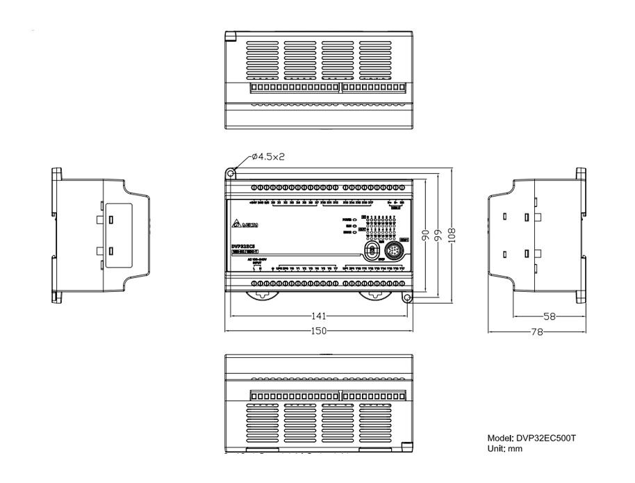 | Dimensions | Delta DVP32EC500T Dimensions |