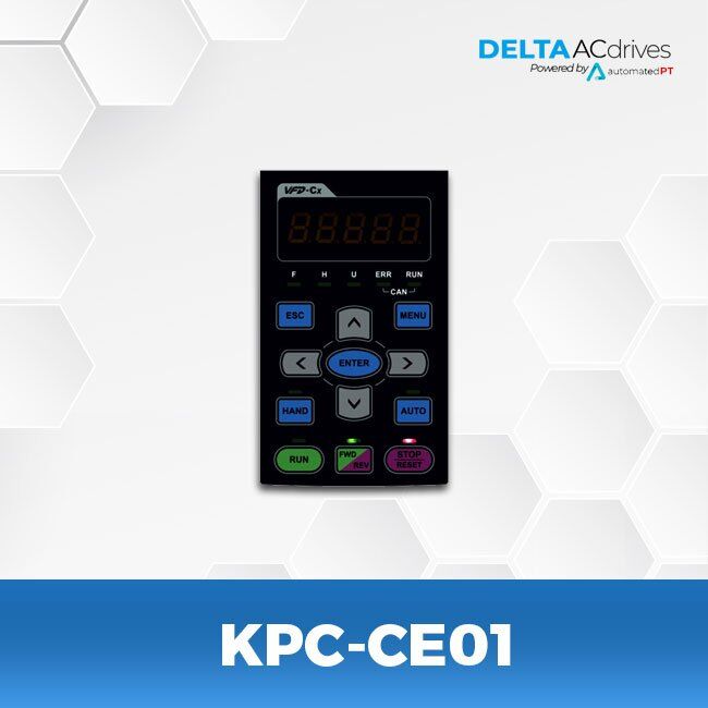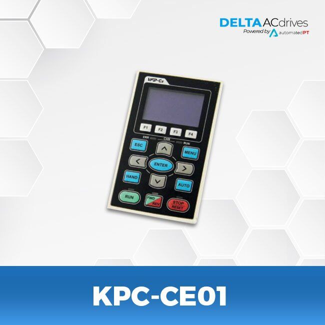 The Delta KPC-CE01 is a versatile LCD keypad that allows users to monitor and configure drive parameters remotely.