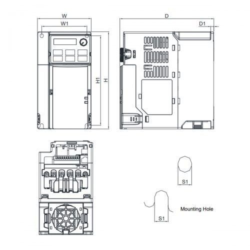 | Dimensions | Delta VFD11AMS21ENSHA Dimensions |