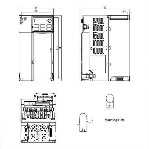 | Dimensions | Delta VFD13AMS43ENSAA Dimensions |