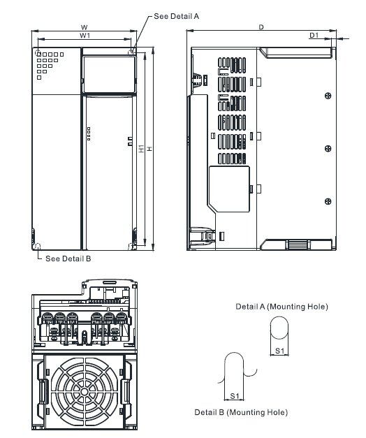 | Dimensions | Delta VFD32AMS43AFSAA Dimensions |