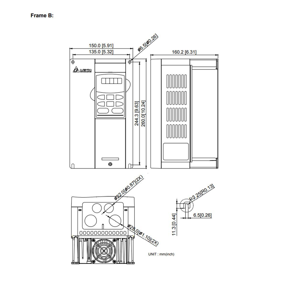 The Delta VFD-B series is a general purpose NEMA 1 drive and offers V/F, Sensorless Vector and Closed Loop Vector control. With its Constant Torque rating and 0-2000Hz output, the VFD-B is designed to handle most conventional drive applications found in the industrial manufacturing industry. The VFD-B series drives are used in many applications including: HVAC, Compressor, Crane Gantry, Elevator, Escalator, Material Handling, Water/Wastewater, and Woodworking to name a few.
