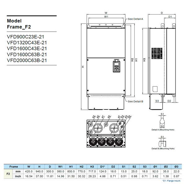 | Dimensions | Delta VFD1600C43A-21 Dimensions |