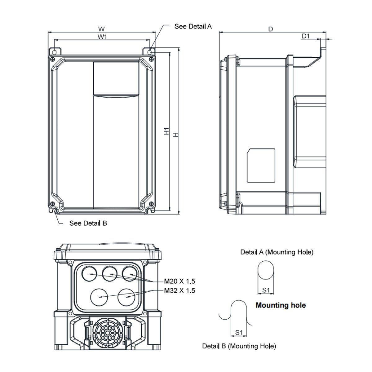 | Dimensions | Delta VFD17AMS43MNSAA Dimensions |