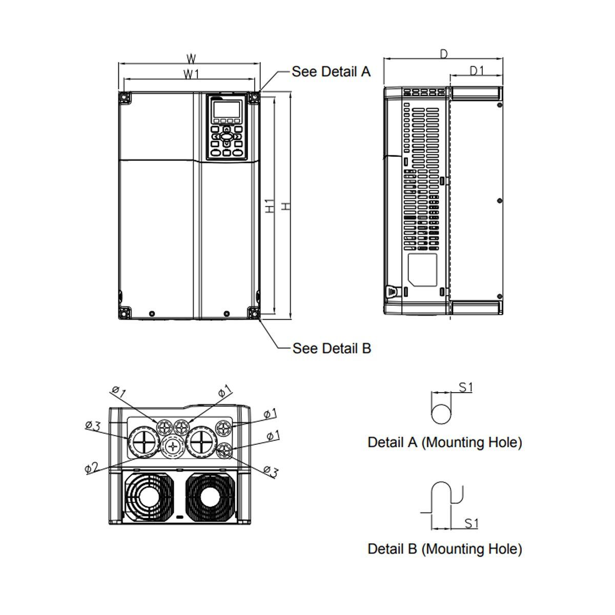 | Dimensions | Delta VFD185CP63A-21 Dimensions |