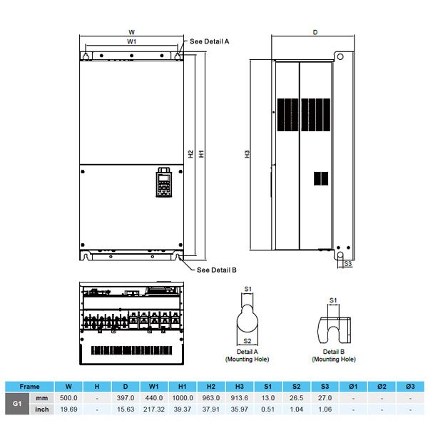 | Dimensions | Delta VFD2000CP43A-00 Dimensions |