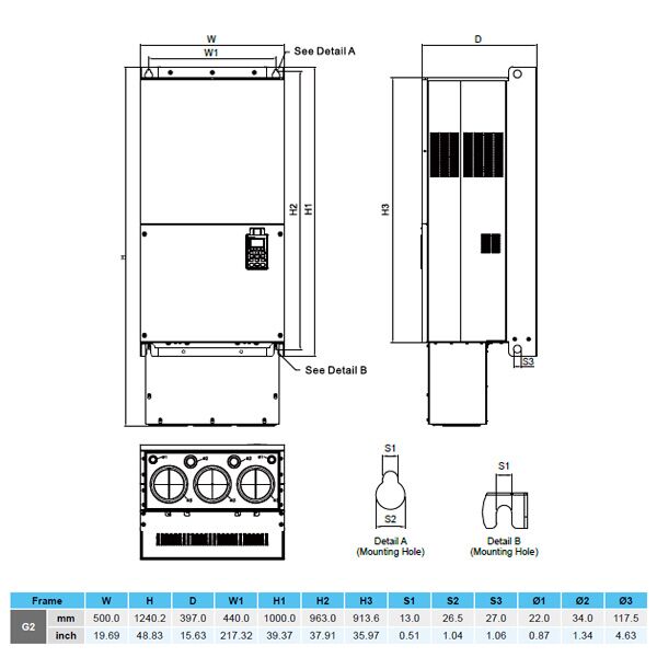 | Dimensions | Delta VFD2500CP43A-21 Dimensions |