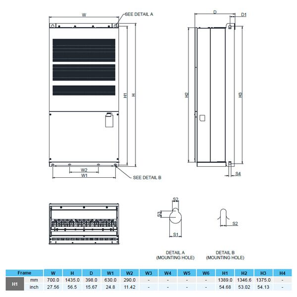| Dimensions | Delta VFD4000CP63A-21 Dimensions |