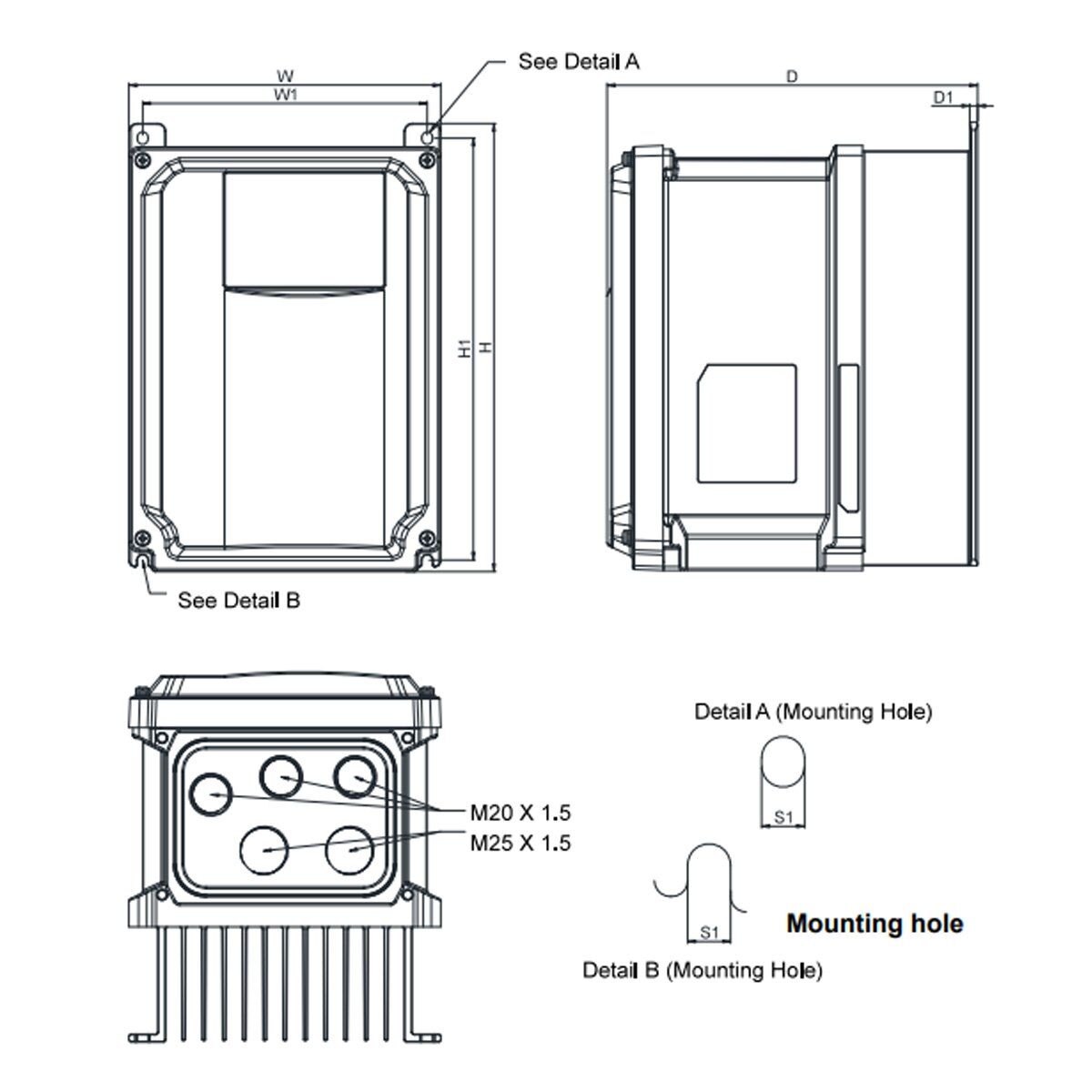 | Dimensions | Delta VFD7A5MS23MNSAA Dimensions |